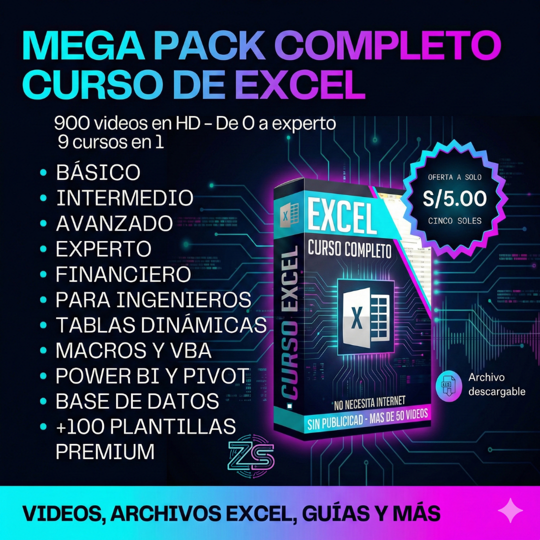 🔥 Megapack de Excel: De Cero a Experto ¡Acelera tu carrera profesional, automatiza tu trabajo y conviértete en el talento más valioso de tu empresa! Aprende a tu propio ritmo por un único pago de S/ 5.00 (Antes S/ 50.00).