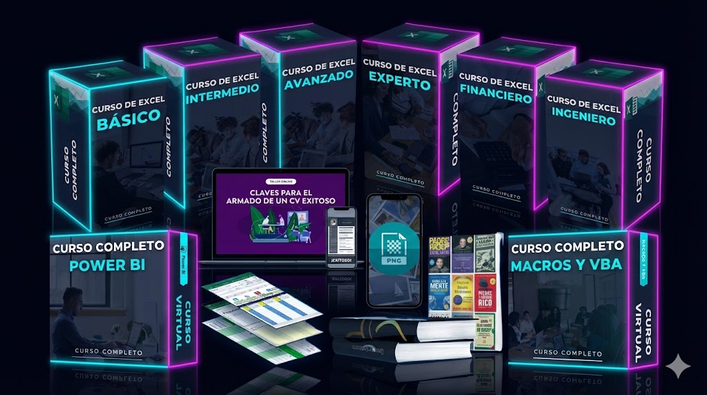 ¿Qué incluye? ✅ Todos los niveles (Básico hasta Experto). ✅ Especializaciones (Financiero, Ingenieros, Tablas Dinámicas y Power BI). 🎁 Regalos: Curso de Macros/VBA y +100 plantillas profesionales. 💻 Acceso ilimitado de por vida en Google Drive + Certificado al finalizar.