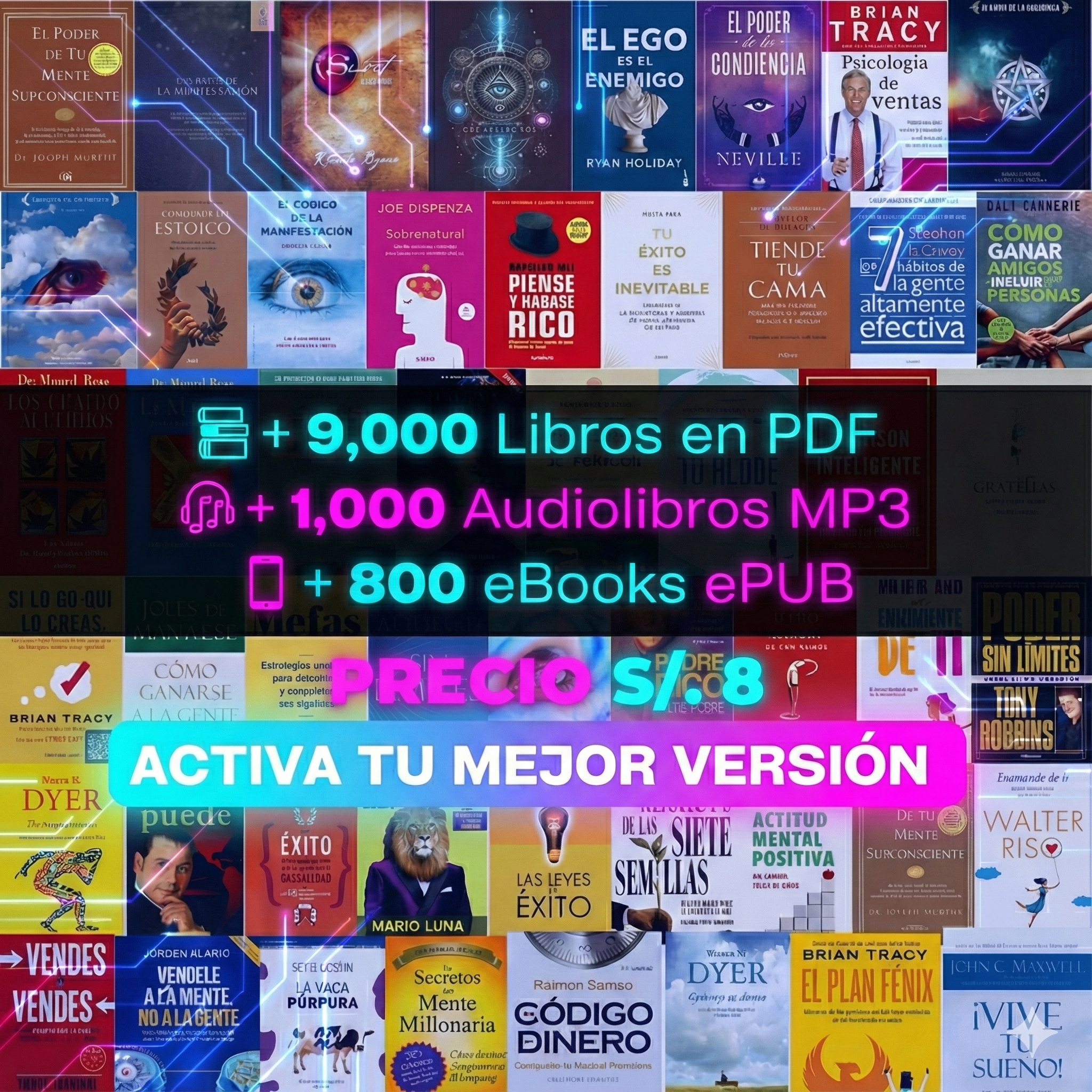 🔥 Mega Pack Libros VIP: Tu Biblioteca Digital Definitiva al 90% OFF Accede de por vida a más de 10,000 títulos (PDF, Audiolibros y ePub) sobre educación financiera, psicología, marketing y desarrollo personal. Todo organizado en Google Drive y listo para descargar en cualquier dispositivo. Incluye comunidad privada, bonos exclusivos y licencia de reventa para iniciar tu propio negocio. ¡Oferta Limitada! Llévatelo todo por solo S/8 (Antes S/80).
